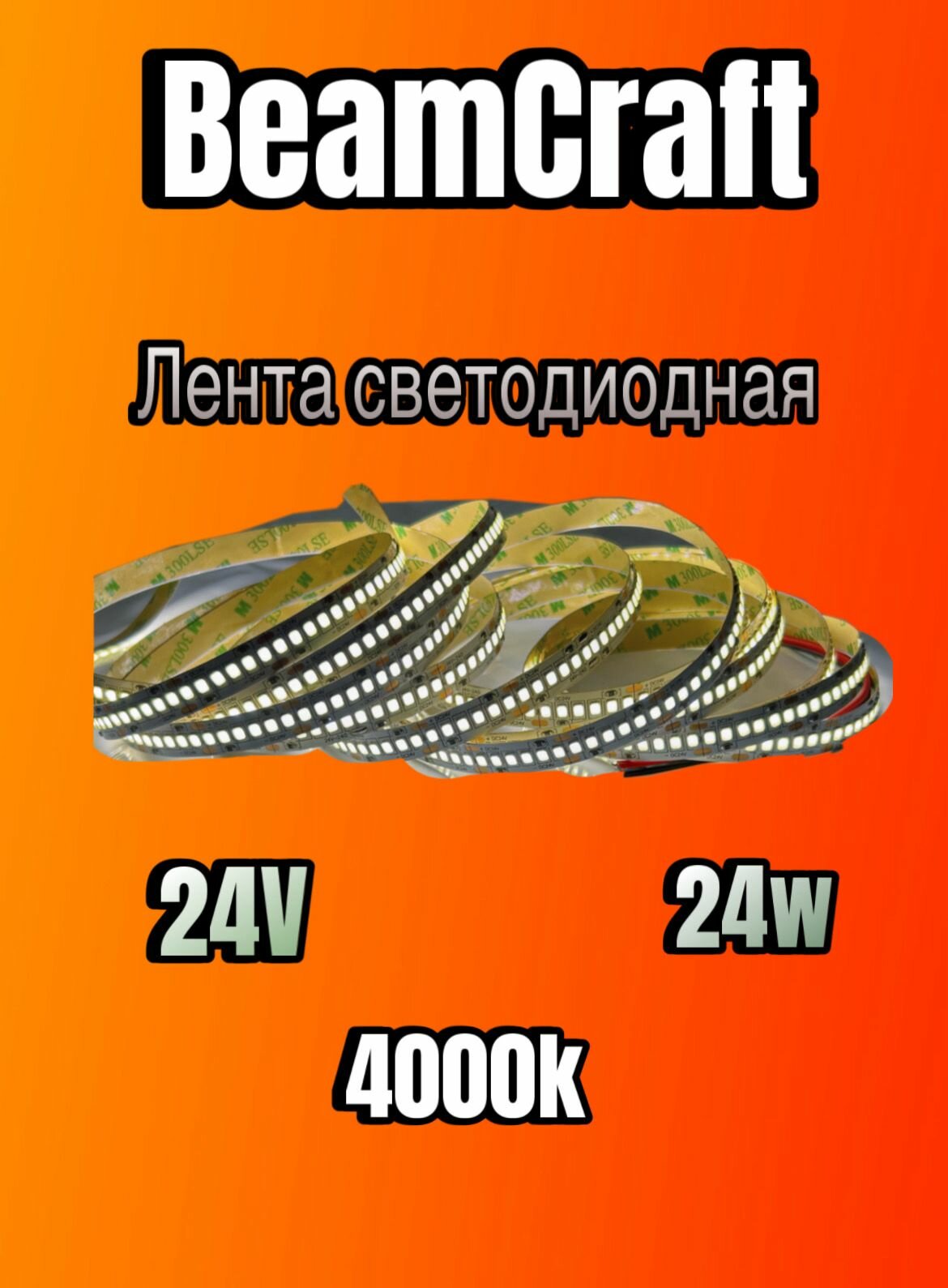 Купить Лента светодиодная 24V 24W, 4000К, 240 led/m, 6000Lm, 10mm, SMD2835, IP20, 5 метров с доставкой по всей России.