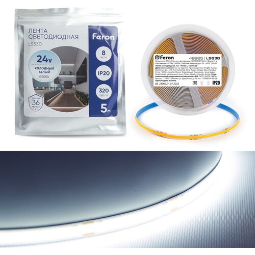 Светодиодная LED-лента Feron LS530 - это инновационный продукт, который может быть использован для создания яркого и стильного освещения в любом помещении. Эта лента оснащена 320 светодиодами на метр, что обеспечивает высокую яркость и равномерное освещение. Она имеет холодный белый цвет свечения, который подойдет для любых интерьеров.
