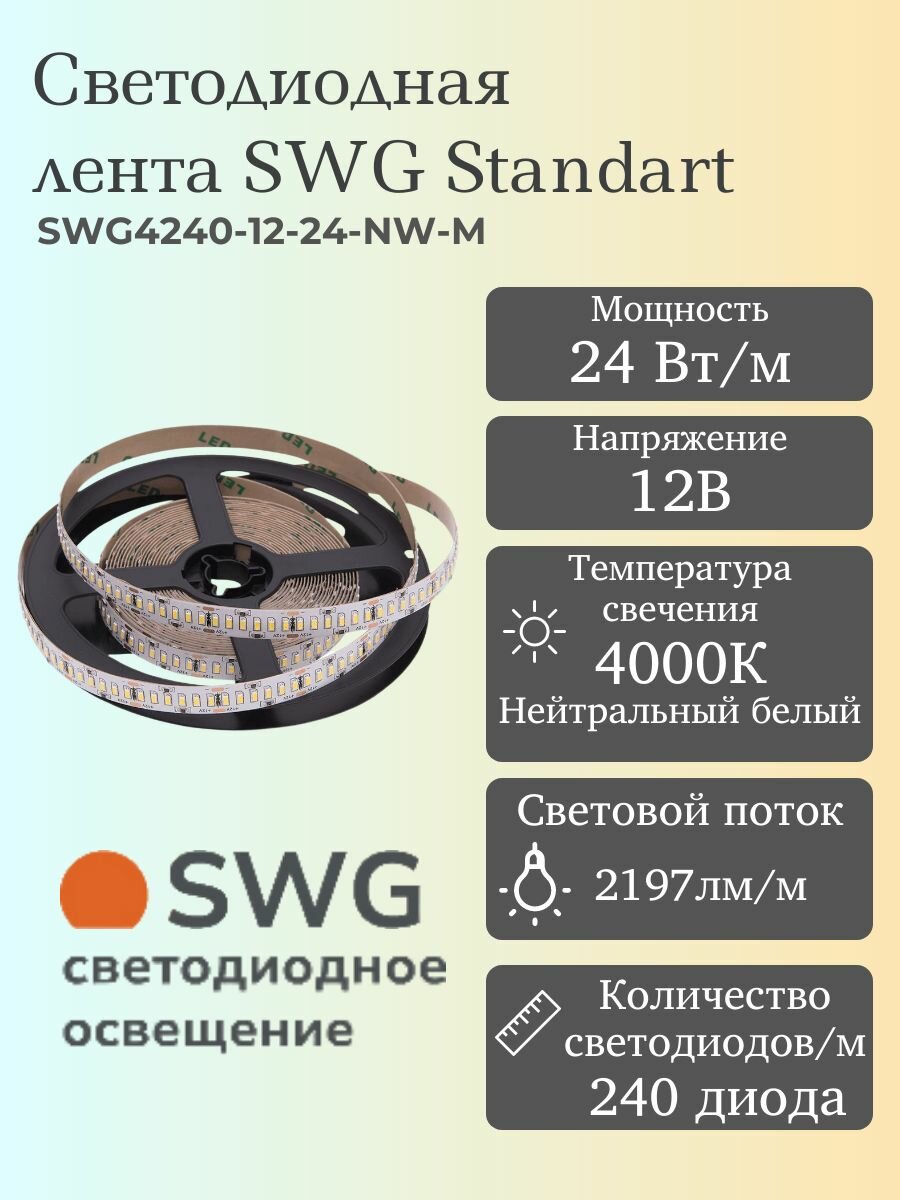 Купить SWG Светодиодная лента 24 Вт/м, 12В, IP20, Нейтральный белый с доставкой по всей России. SWG Светодиодная лента 24 Вт/м, 12В, IP20, Нейтральный белый: сравнение цен, характеристики, фото, актуальное наличие и цены.