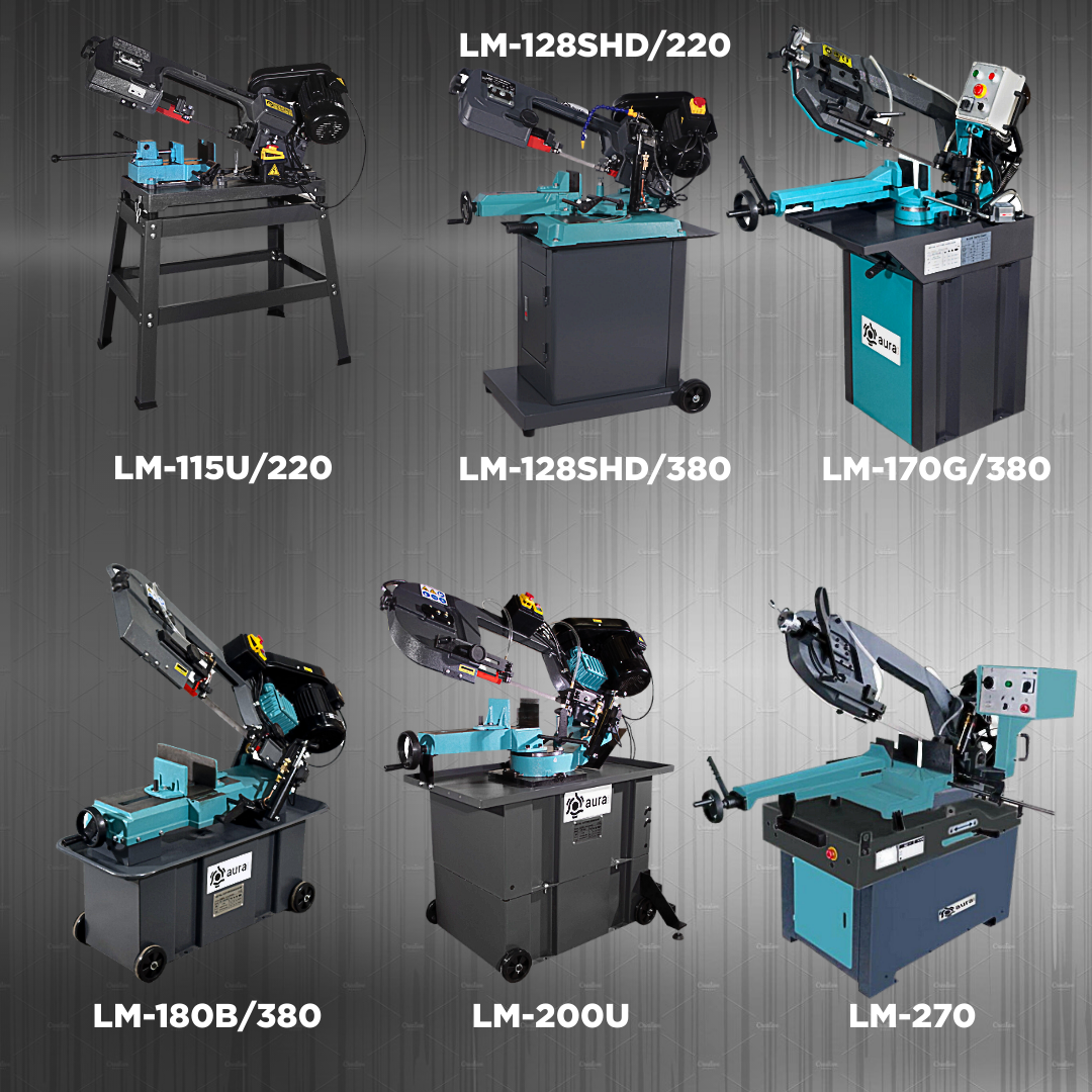 AURA TOOLS LM-128SHD/220 – ленточная пила по металлу небольшого размера, используется для резки заготовок из алюминия, цветных металлов, стали, легированной стали, сплавов, а также пластмасс.