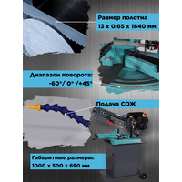 Модель - LM-128SHD/380; Артикул - 40128300; Зона обработки при 90º, профиль - Ø125 мм □125 мм □150 х 125 мм; Зона обработки при 45º, профиль - Ø95 мм □75 мм; Зона обработки при 60°, профиль - Ø44 мм □44 мм; Скорость движения полотна - 20 / 29 / 50 м/мин; Размеры ленточного полотна - 13 х 0,65 х 1640 мм; Диапазон поворота - -45°/ 0° /+60° (рама); Диаметр шкивов - 187 мм; Высота рабочего стола - 755 мм; Мощность - 550 Вт; Напряжение - 380 В; Габаритные размеры (ДхШхВ) - 1050 х 560 х 1500 мм; Масса - 101 / 105 кг; Размер упаковки - 950 x 460 x 550 мм.