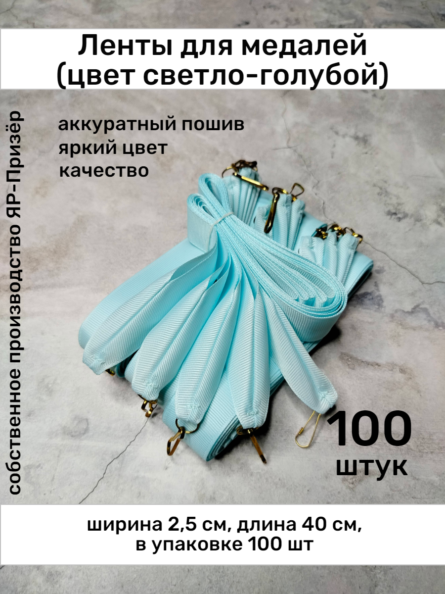 Ленты для медалей, репс и металл, 100 шт, длина 40см, ширина 2,5см, цвет светло-голубой: сравнение цен, характеристики, фото, актуальное наличие и цены.