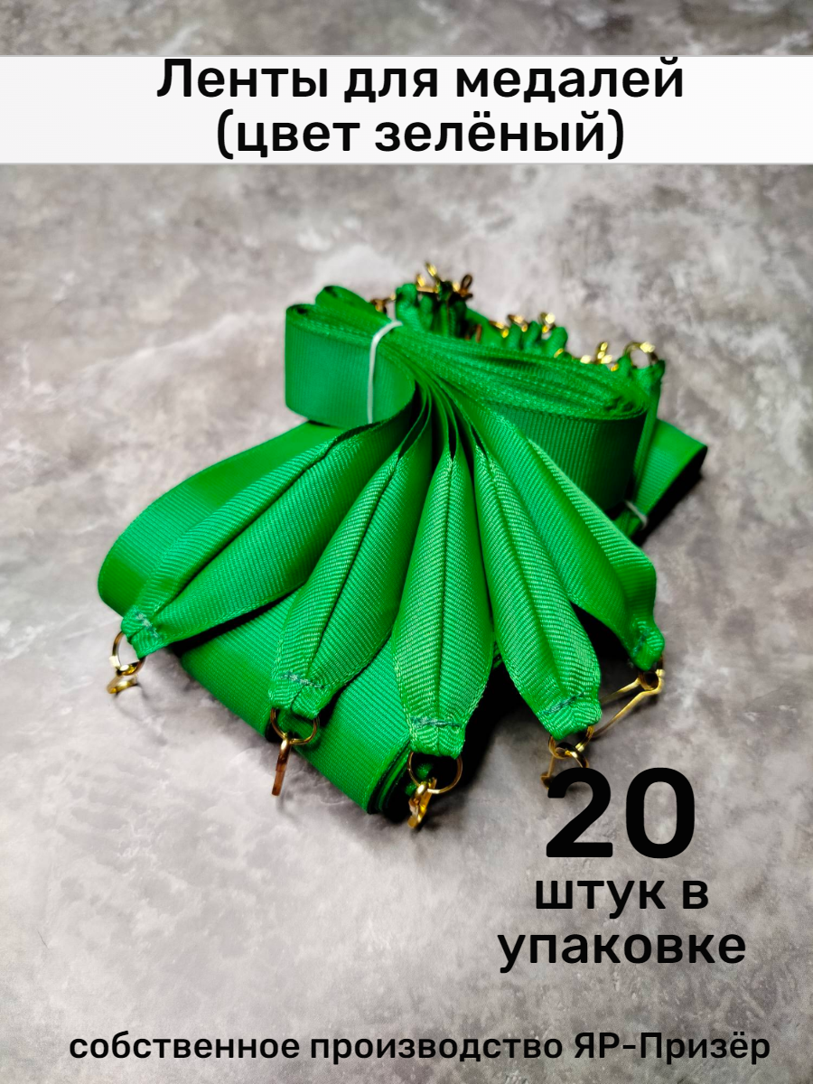 Ленты для медалей, репс и металл, 20 шт, длина 40см, ширина 2,5см, цвет зеленый: сравнение цен, характеристики, фото, актуальное наличие и цены.