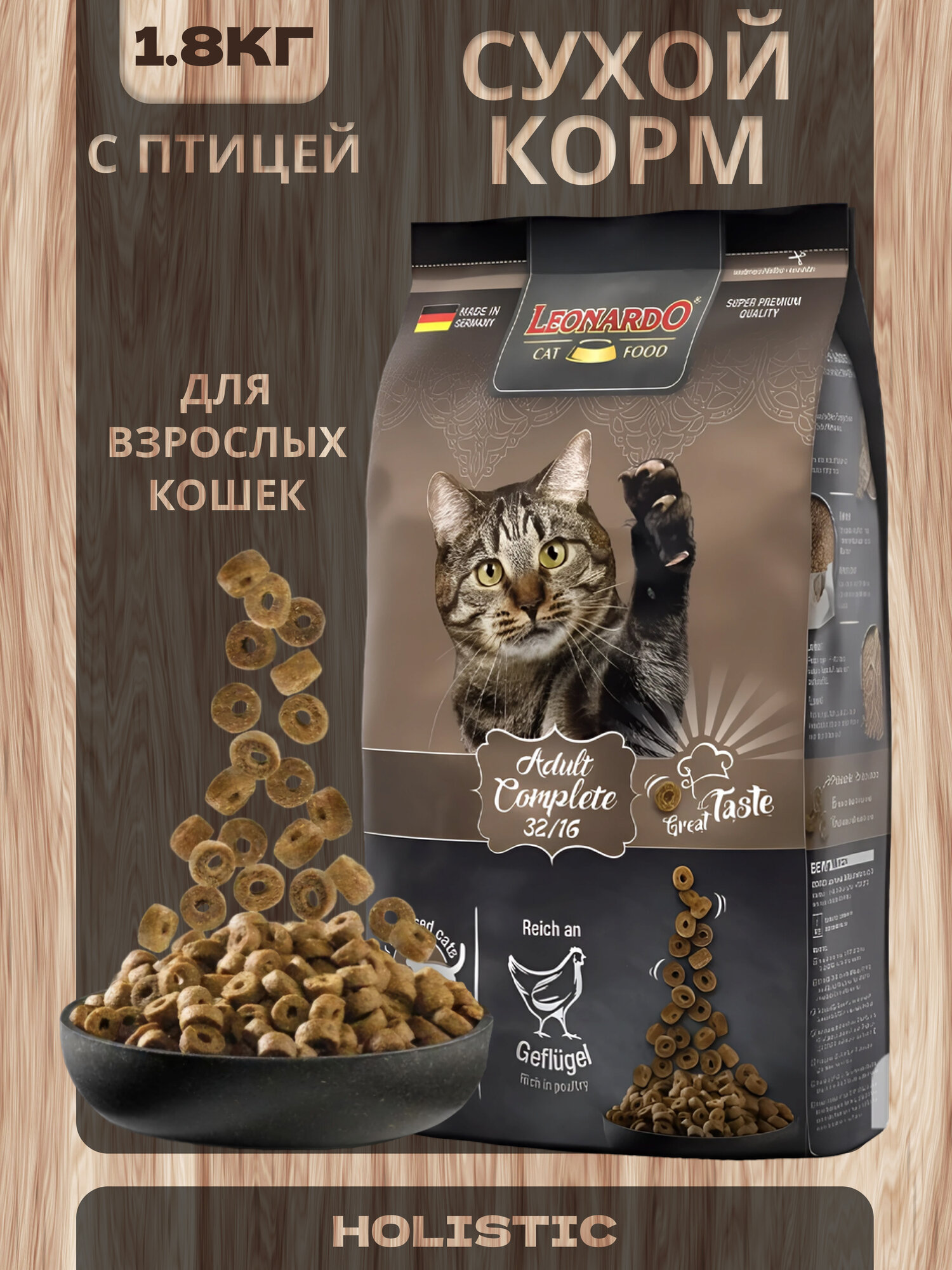 Купить Leonardo Complete 32/16 Adult Cat Сухой корм для кошек, Птица 1.8 кг с доставкой по всей России. Leonardo Complete 32/16 Adult Cat Сухой корм для кошек, Птица 1.8 кг: сравнение цен, характеристики, фото, актуальное наличие и цены.