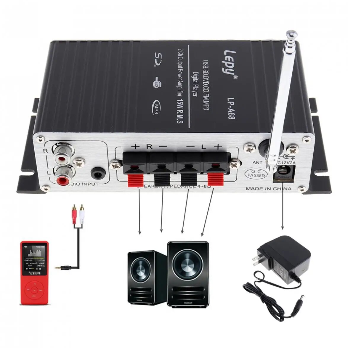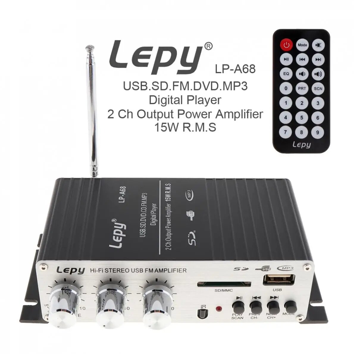 Купить LEPY LP-A68 15W x 2 2CH Hi-Fi цифровой аудио плеер мощный автомобильный усилитель FM Радио стерео плеер Поддержка SD USB MP3 DVD вход с доставкой по всей России. LEPY LP-A68 15W x 2 2CH Hi-Fi цифровой аудио плеер мощный автомобильный усилитель FM Радио стерео плеер Поддержка SD USB MP3 DVD вход: сравнение цен, характеристики, фото, актуальное наличие и цены.