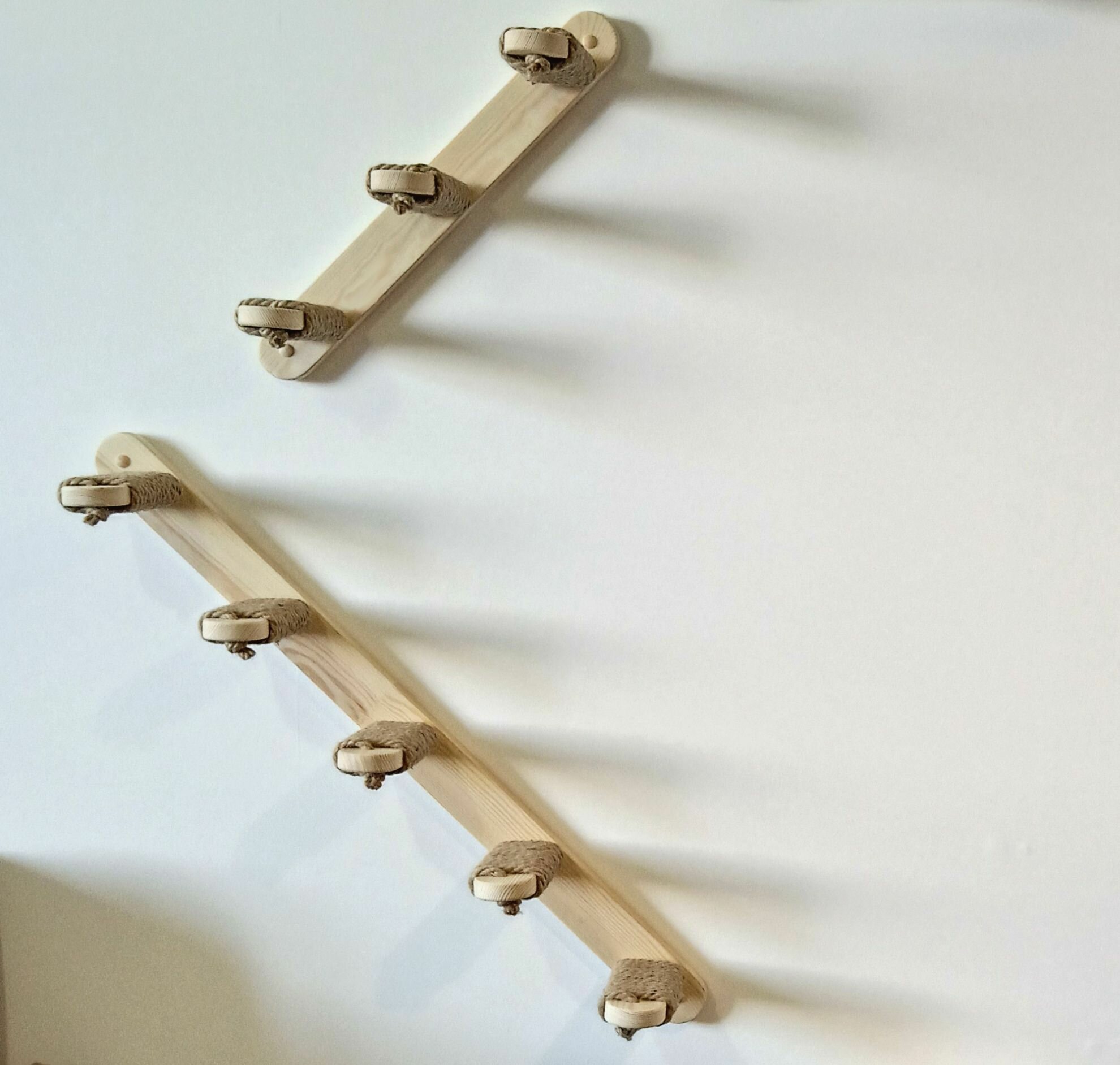 Поздравляем, у Вас дома - потомок лесных хищников! Они любят передвигаться не только горизонтально, но и вертикально. Это дает им ощущение безопасности и контроля над ситуацией. Подарите своему другу настенный комплекс, который станет излюбленным местом игр, отдыха и главным наблюдательным пунктом. Настенные лесенки для кошек - один из элементов игровых комплексов WOW.WOOD. Могут применяться отдельно, например, чтобы обеспечить вашему любимцу путь к предметам мебели и интерьера, расположенным на возвышенности. Также лесенки хорошо сочетаются с нашими гамаками и полками для кошек и подходят к разным стилям в интерьере. Прочная конструкция подойдет для различных пород, а входящая в комплект кошачья мята сделает приучение быстрым, а использование приятным. Изготовлены из массива сосны, устойчивы. Все поверхности тщательно отшлифованы и закруглены для безупречного внешнего вида и безопасности.