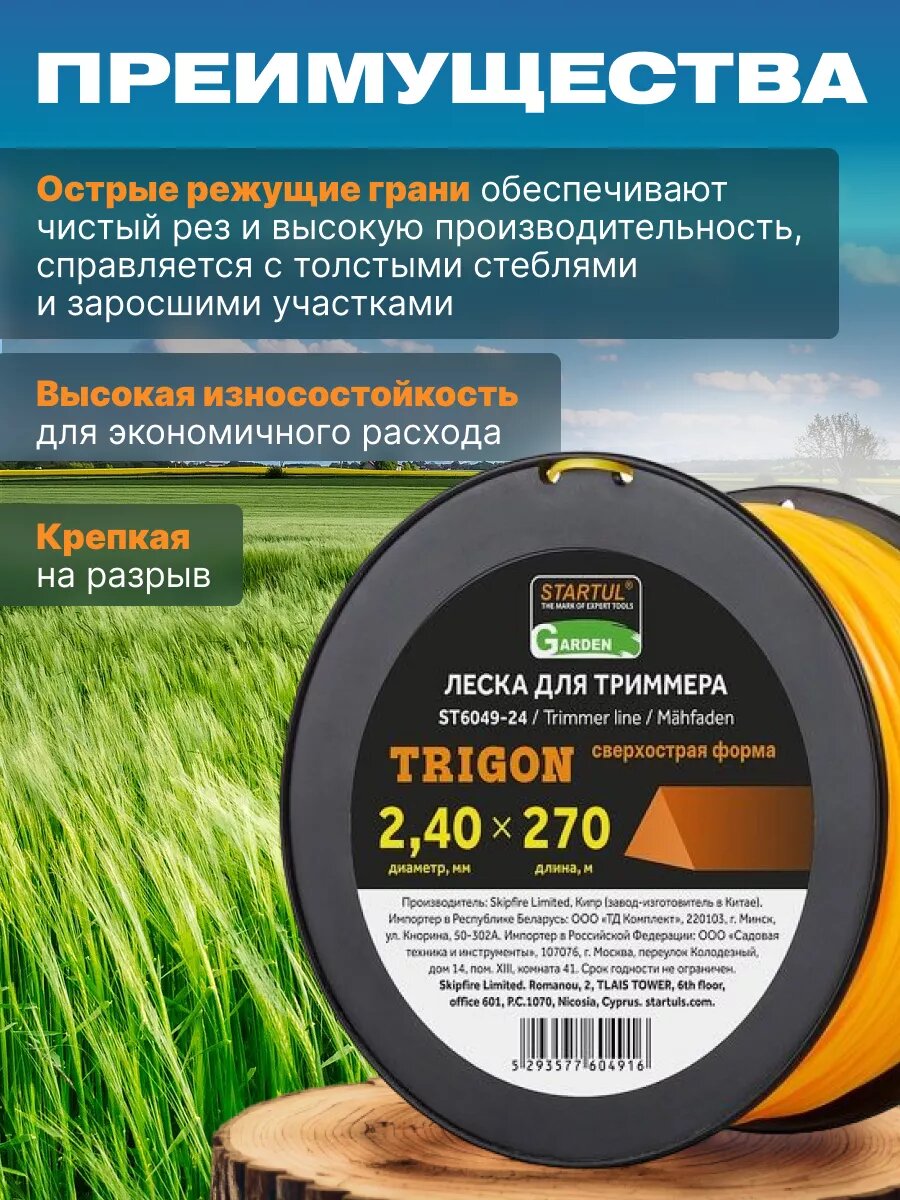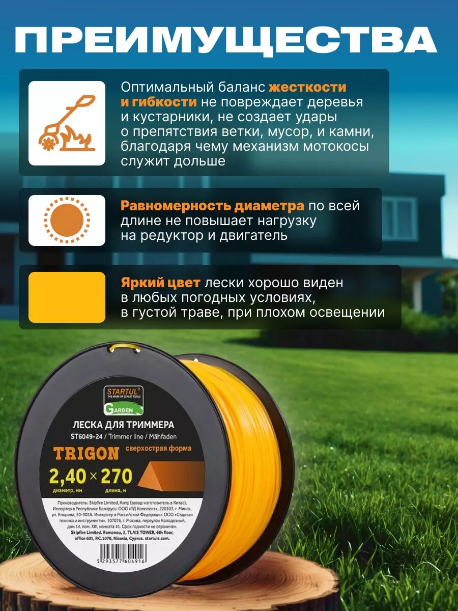 Леска для триммера d 2,4 мм x 270 м сечение треугольное STARTUL GARDEN (ST6049-24): сравнение цен, характеристики, фото, актуальное наличие и цены.