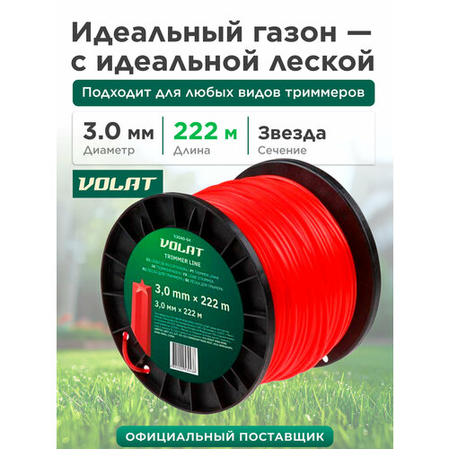 Леска для триммера волат (53040-04) с сечением звездочка и диаметром 3,0 мм предназначена для электрических триммеров и мотокос.