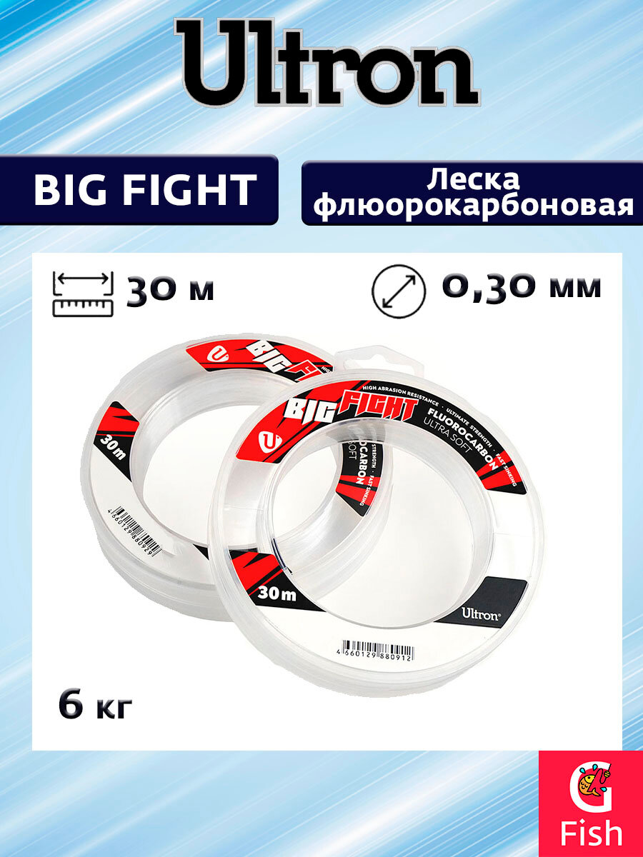 Леска флюорокарбоновая ULTRON Big Fight Fluorocarbon 0,30 мм, 6,0 кг, 30 м, прозрачная: сравнение цен, характеристики, фото, актуальное наличие и цены.