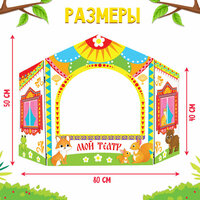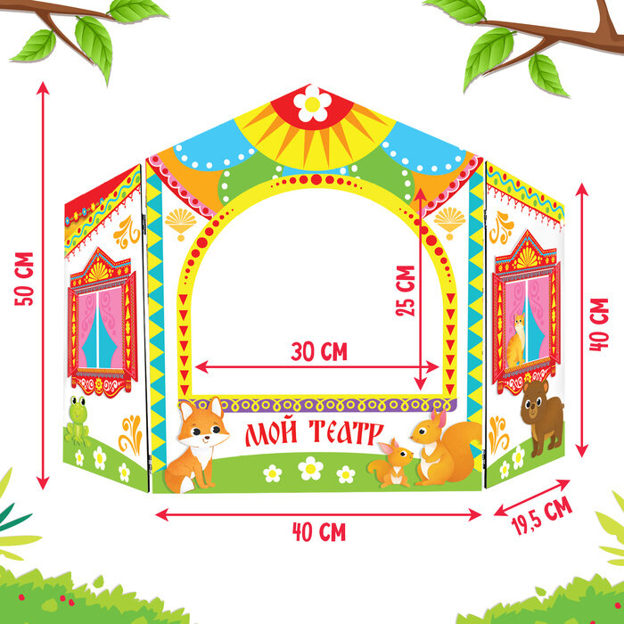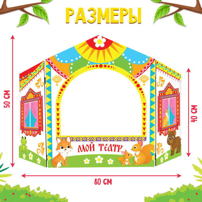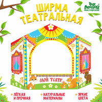 Ширма состоит из двух частей, которые легко соединяются между собой. Игрушка подходит для детей от 3 лет.