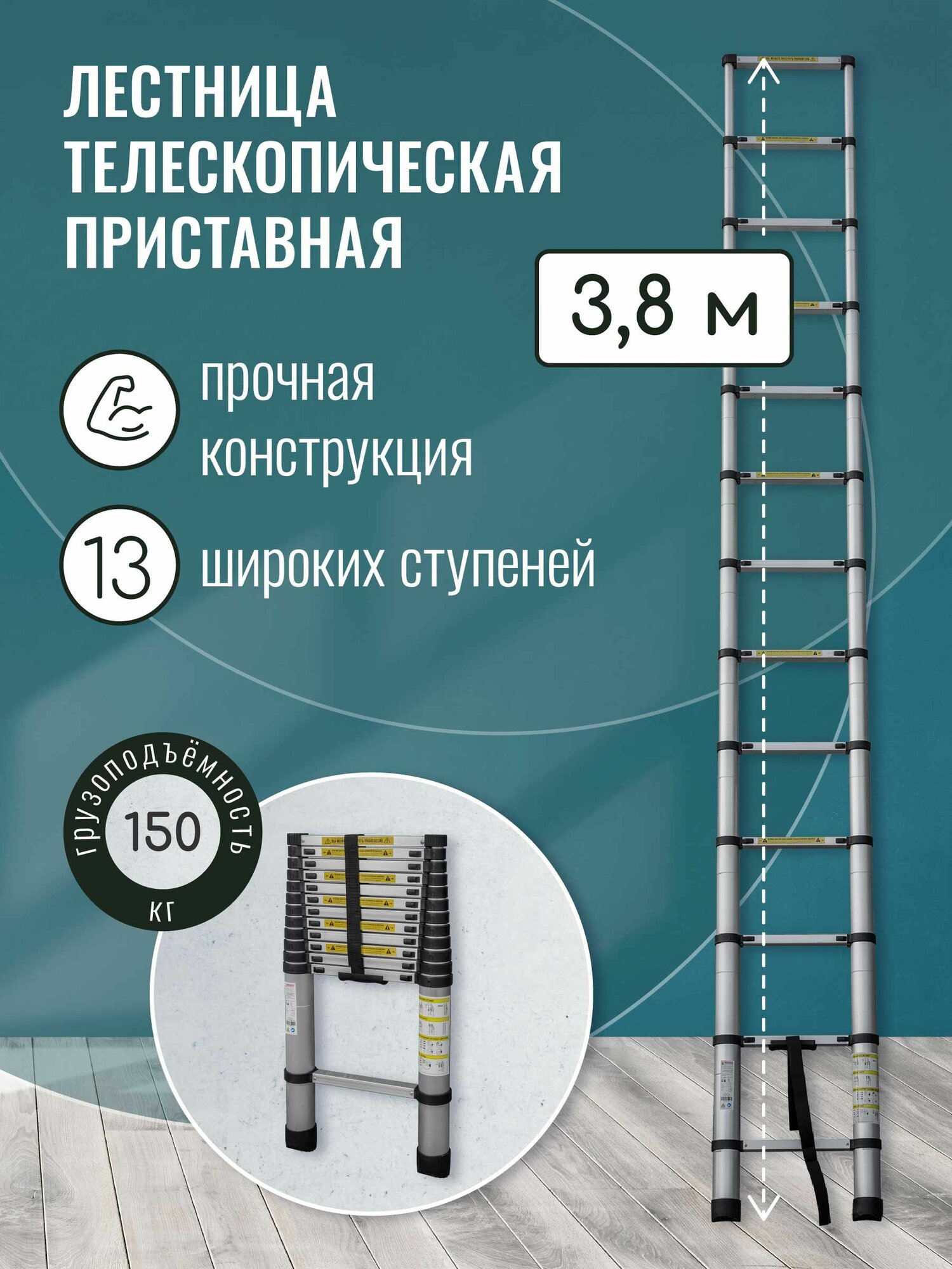 Купить Лестница телескопическая алюминиевая 13 ступеней 3,8м Мал Удал с доставкой по всей России. Лестница телескопическая алюминиевая 13 ступеней 3,8м Мал Удал: сравнение цен, характеристики, фото, актуальное наличие и цены.