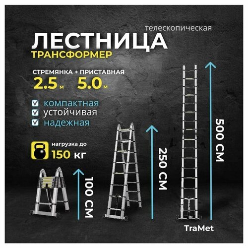 Купить Лестница алюминиевая телескопическая 5,0 м (2,5+2,5) профессиональная TraMet TR5050 с доставкой по всей России. Лестница алюминиевая телескопическая 5,0 м (2,5+2,5) профессиональная TraMet TR5050: сравнение цен, характеристики, фото, актуальное наличие и цены.