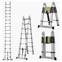 Профессиональная телескопическая лестница TraMet TR5066 имеет общую длину 6.6 метров в виде приставной лестницы, или 3.3+3.3 метров как стремянка.