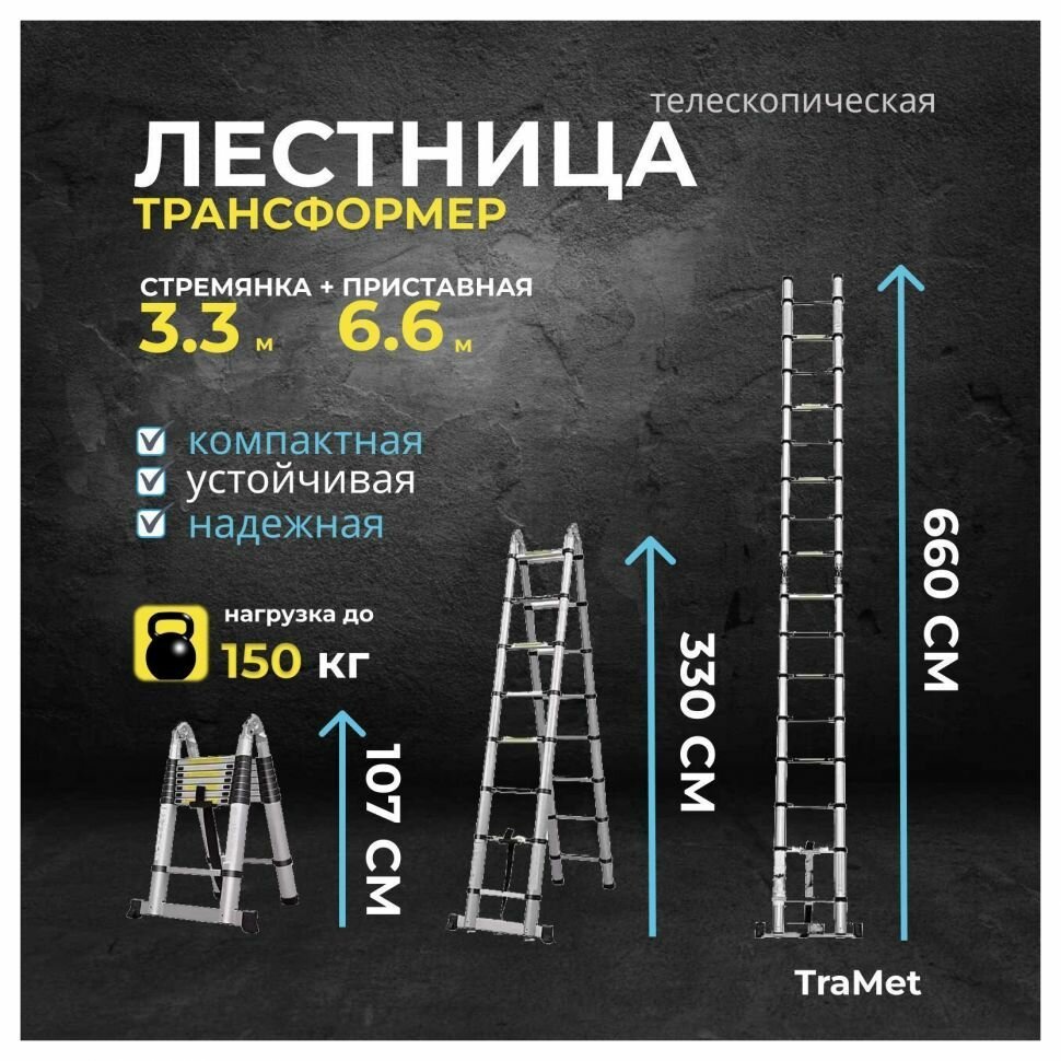 Купить Лестница алюминиевая телескопическая 6,6 м (3,3+3,3) TraMet TR5066 с доставкой по всей России. Лестница алюминиевая телескопическая 6,6 м (3,3+3,3) TraMet TR5066: сравнение цен, характеристики, фото, актуальное наличие и цены.