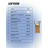 Лестница также оснащена удобным поручнем и наконечниками на ножках, что увеличивает ее устойчивость и защищает поверхность пола от повреждений. Выбирая чердачную лестницу LOFTSTEP VLK, вы получаете практичное решение для вашего дома, которое сочетает в себе функциональность и стиль. Это отличный выбор для тех, кто ценит качество и комфорт в своем интерьере.