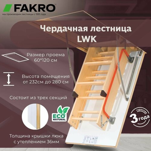 Лестница FAKRO LWK 60*120* 280 (утепленная, крышка 36 мм): сравнение цен, характеристики, фото, актуальное наличие и цены.