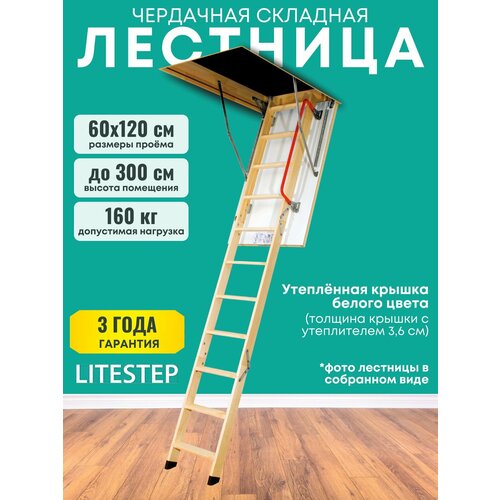 Чердачная складная лестница 60х120х300 RLK LiteStep, из дерева с утепленной крышкой-люком (2 сегмента в разборе): сравнение цен, характеристики, фото, актуальное наличие и цены.