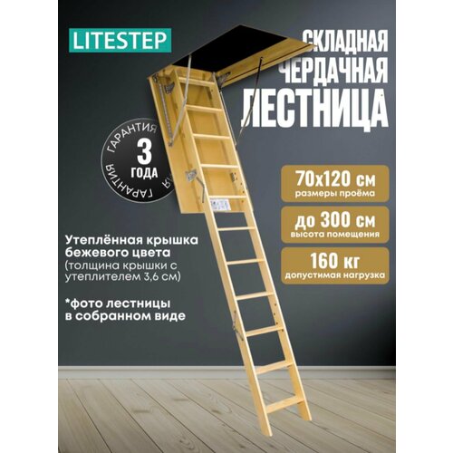 Чердачная складная лестница 70х120х300 RLS LiteStep , из дерева с утепленной крышкой-люком для (2 сегмента в разборе): сравнение цен, характеристики, фото, актуальное наличие и цены.