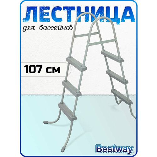 Лестница для каркасных и надувных бассейнов Intex и Bestway с высотой борта до 107 см. Легко и быстро устанавливается, имеет широкий угол между сторонами, достаточный для того чтобы не касаться стенок бассейна и в тоже время быть удобной в использовании.