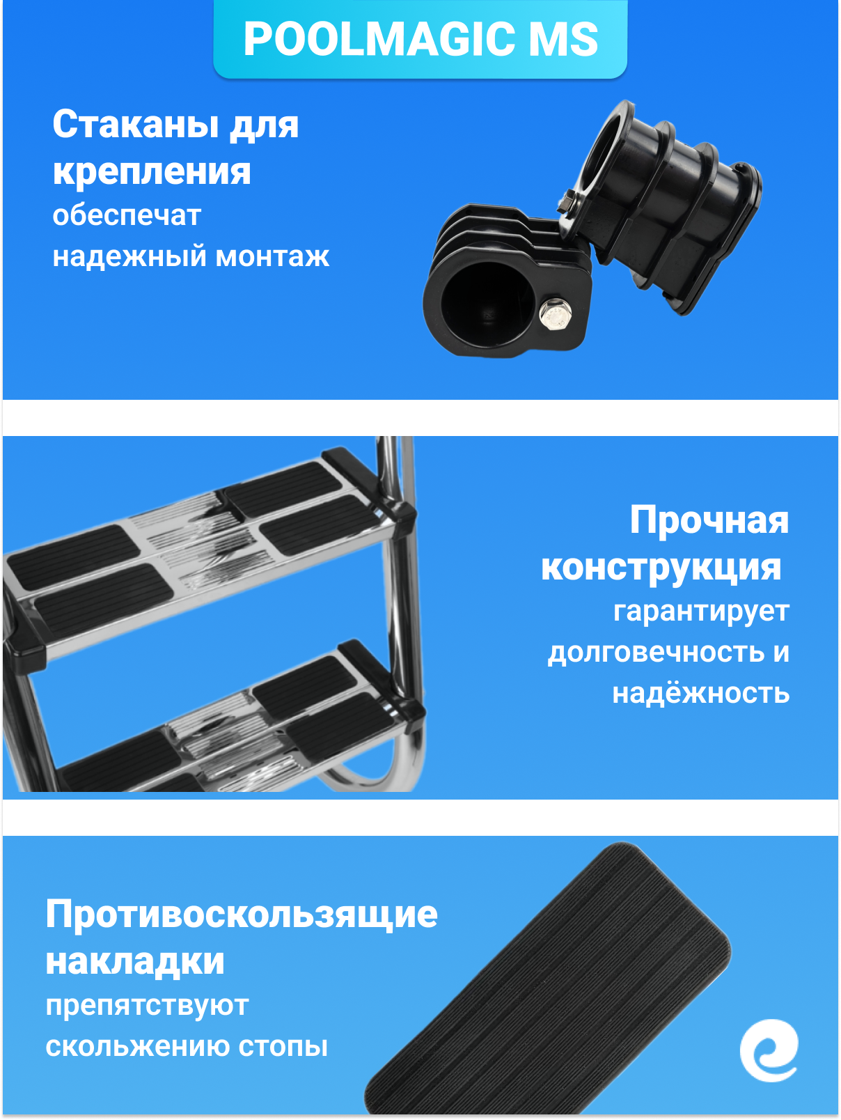 Купить Лестница для бассейна Poolmagic MS 315, 3 ступени, нержавеющая сталь AISI-304 с доставкой по всей России.