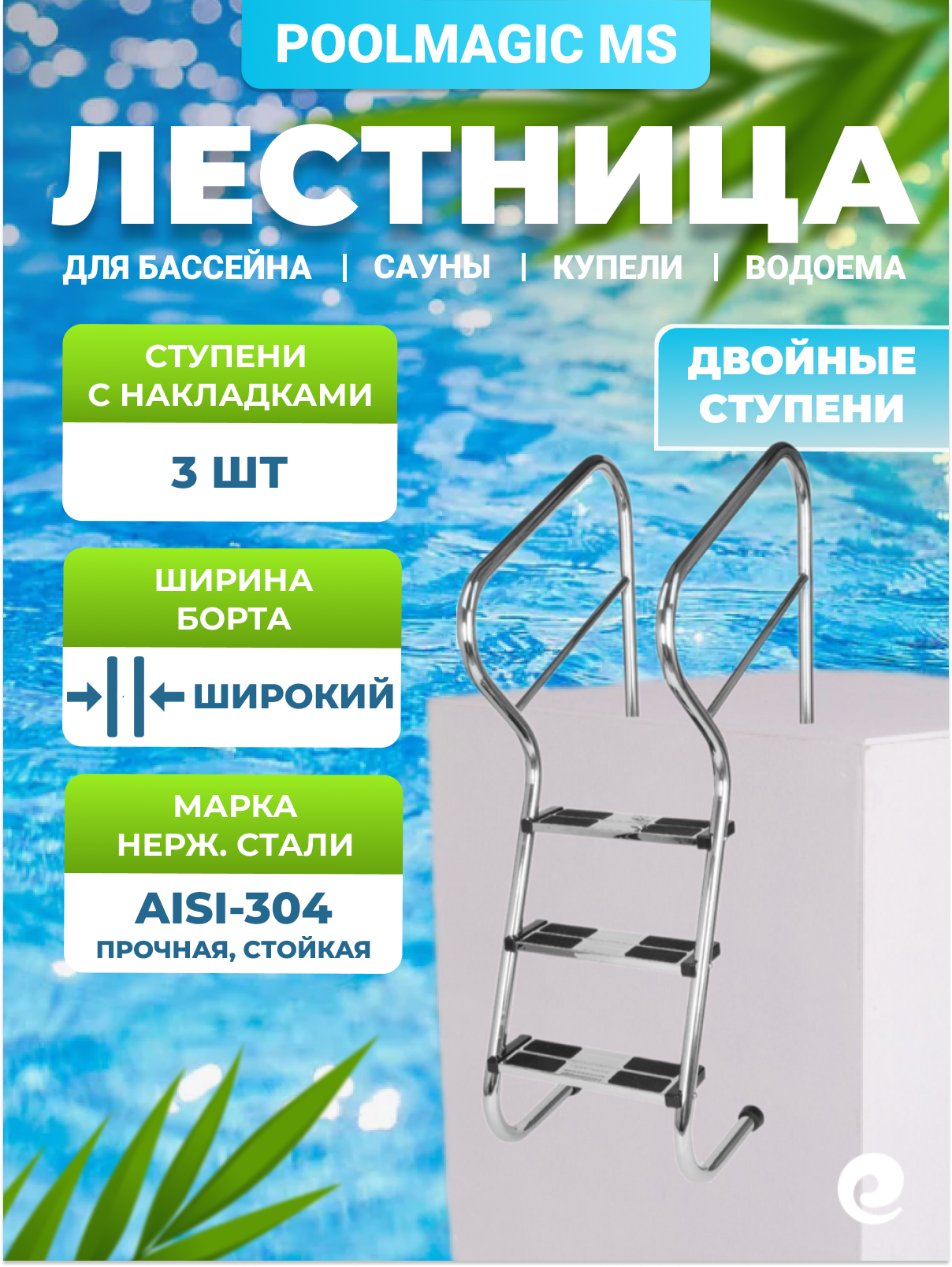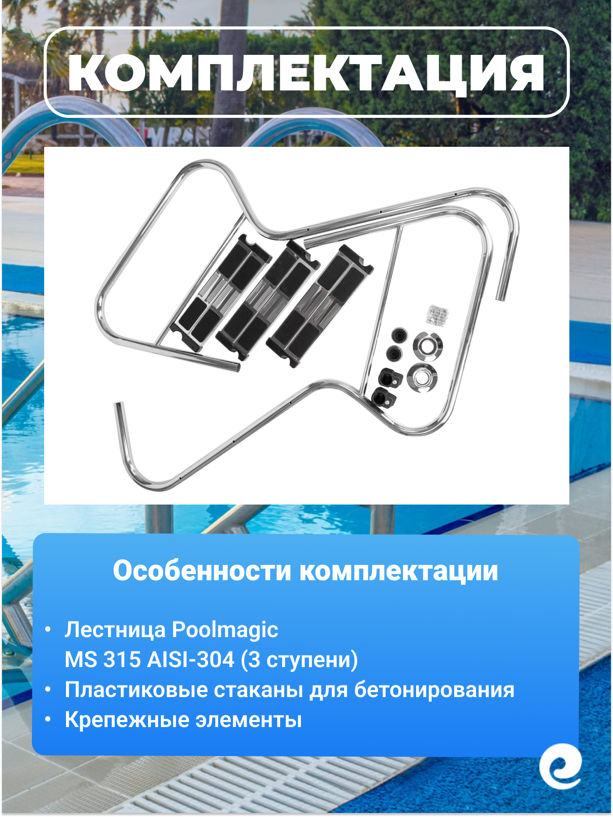 Лестница для бассейна Poolmagic MS 315, 3 ступени, нержавеющая сталь AISI-304: сравнение цен, характеристики, фото, актуальное наличие и цены.