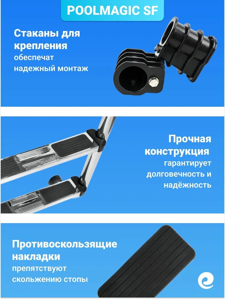Купить Лестница для бассейна Poolmagic SF 315, 3 ступени, нержавеющая сталь AISI-304 с доставкой по всей России.