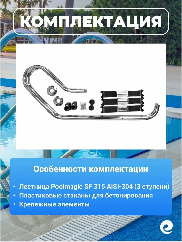 Лестница для бассейна Poolmagic SF 315, 3 ступени, нержавеющая сталь AISI-304: сравнение цен, характеристики, фото, актуальное наличие и цены.
