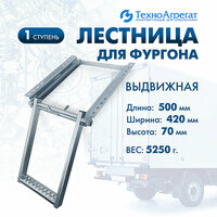 Выдвижная лестница для фургона производства ООО "ТехноАгрегат", существенно упрощает процесс подъема/спуска перевозимых людей или рабочих, задействованных в погрузке/разгрузке груза.