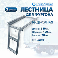 Выдвижная лестница для фургона производства ООО "ТехноАгрегат", существенно упрощает процесс подъема/спуска перевозимых людей или рабочих, задействованных в погрузке/разгрузке груза.