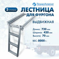 Выдвижная лестница для фургона производства ООО "ТехноАгрегат", существенно упрощает процесс подъема/спуска перевозимых людей или рабочих, задействованных в погрузке/разгрузке груза.