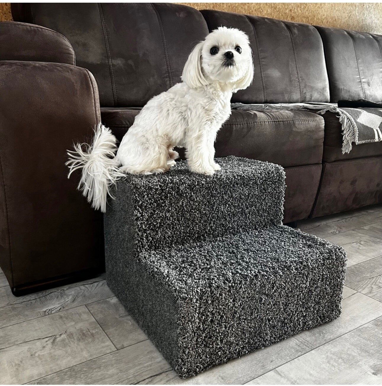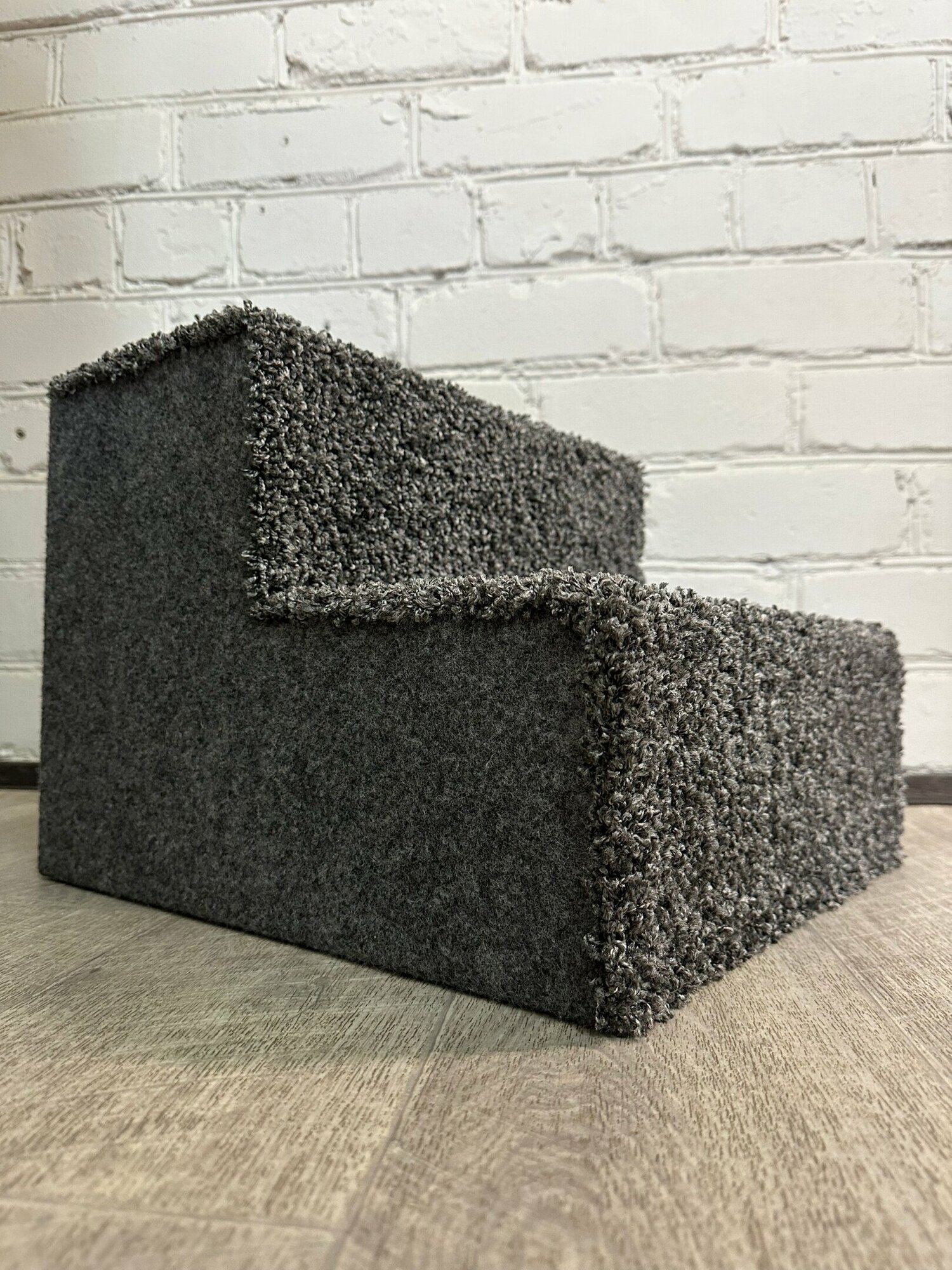 Незаменимая вещь, которая обеспечит Вашему питомцу безопасный подъем и спуск с кровати. Не займет много места в квартире. Выполнена полностью из ДСП. 2 ступени. Обшита лесенка мягким, приятным на ощупь ковролином с ворсом (более прочный, износостойкий материал нежели мех, ткань, например).