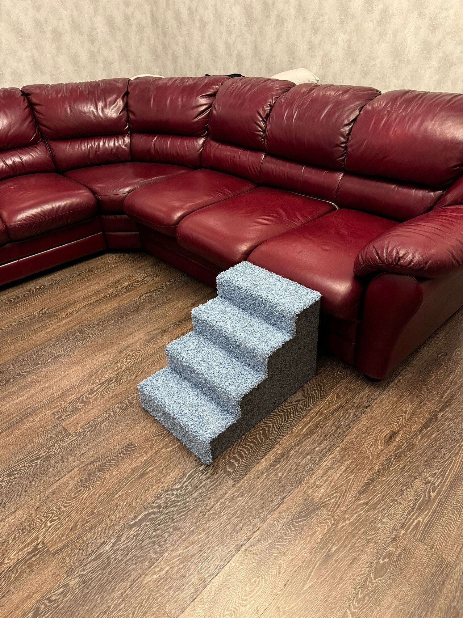 Ваш пёсик, котик не может запрыгнуть на диван, кровать? Тогда ему поможет наша лесенка! Выполнена полностью из ДСП. Очень прочная и надежная. Выдержит животное любого веса. Тяжелая, что не дает ей скользить по полу. Вес- 10кг. Обшиты ступени мягким, приятным на ощупь ковролином с ворсом. Он более прочный, износостойкий материал, нежели мех, ткань, например. Цвет - голубой/серый. Высота лесенки - 40см. Длина - 60 см. Ширина - 40 см. Высота каждой ступени - 10 см. Глубина - 15 см. Уход-пылесос, щетка. Не разборная (приходит в собранном виде).