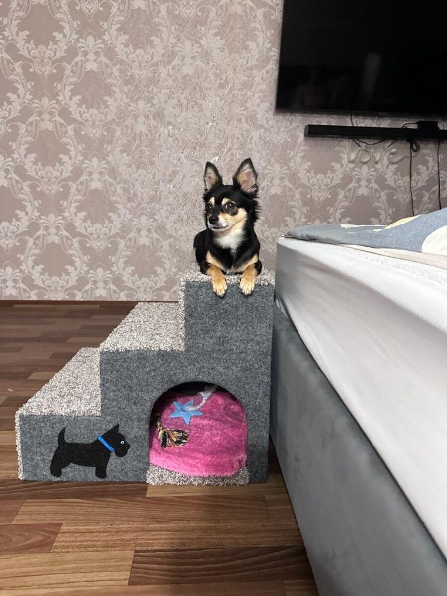 Купить Лестница для собак полностью из ДСП + ковролин с уютным домиком (55*44*46 — д*ш*в) с доставкой по всей России.