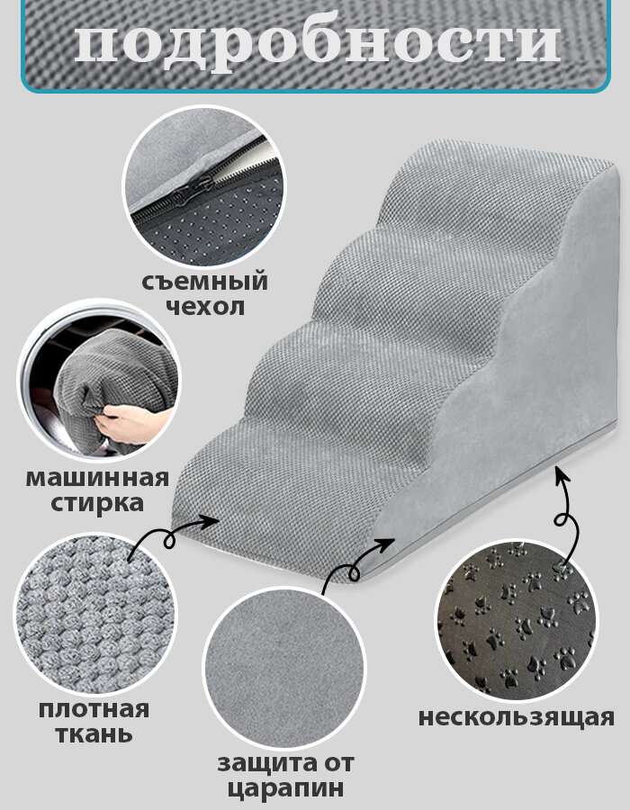 Лестница для собак, прикроватная, 4 ступеньки, лесенка для маленьких кошек, средних пород, 400x700x500MM, Серый: сравнение цен, характеристики, фото, актуальное наличие и цены.