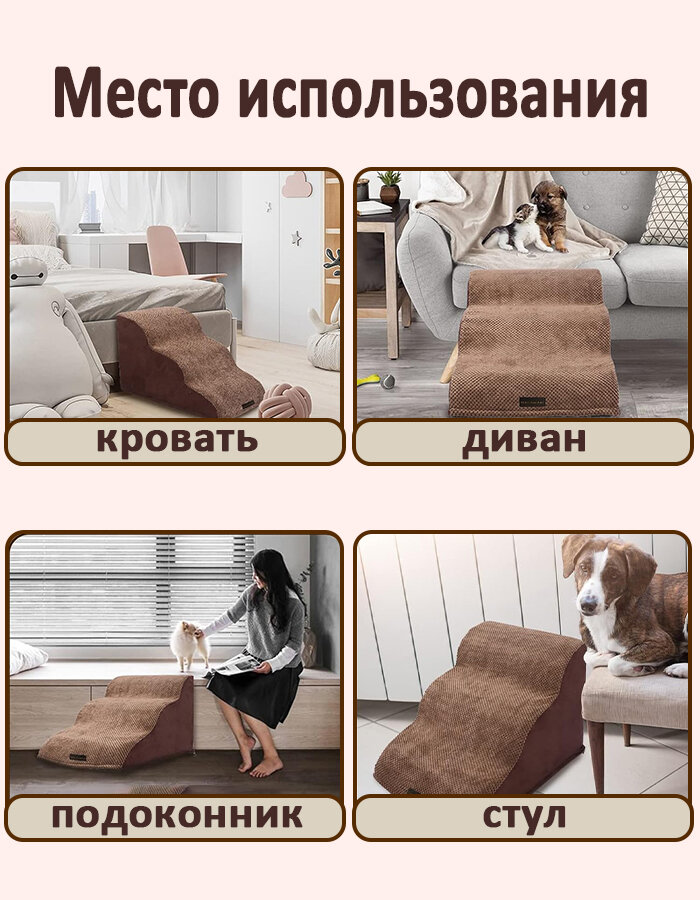 Лестница для собак прикроватная, лесенка для маленьких, 3 ступеньки, кошек, средних пород, коричневый, 400x600x400 мм: сравнение цен, характеристики, фото, актуальное наличие и цены.