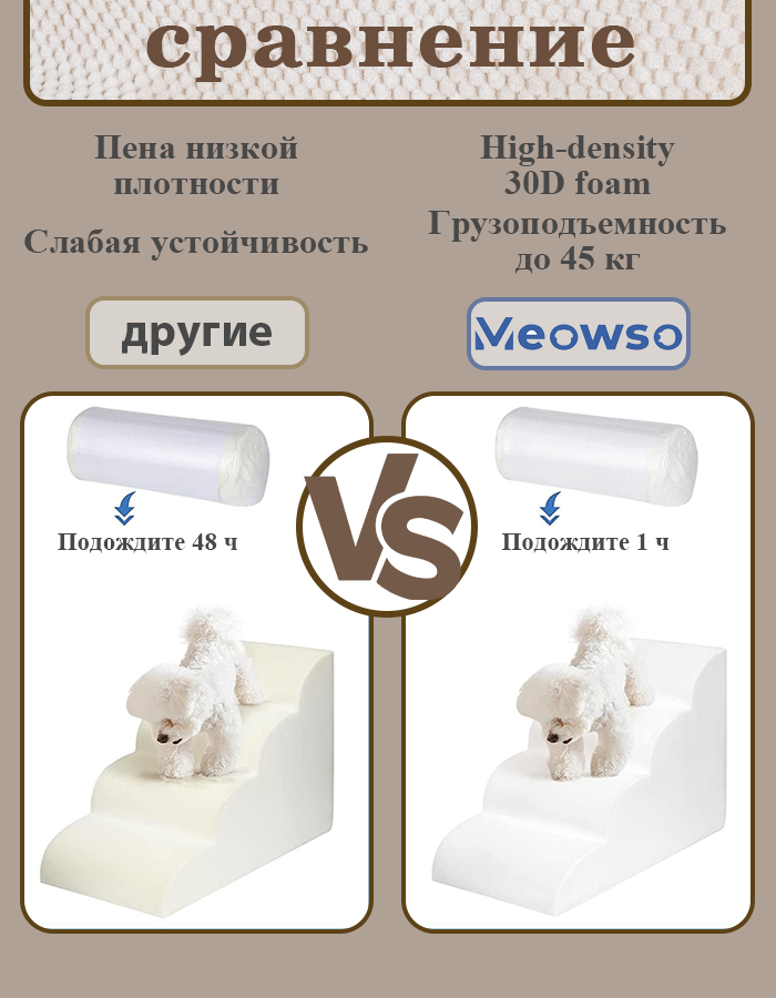 Лестница для собак прикроватная, лесенка для маленьких, кошек, средних пород, 2 ступеньки, бежевый, 300X400X400MM: сравнение цен, характеристики, фото, актуальное наличие и цены.