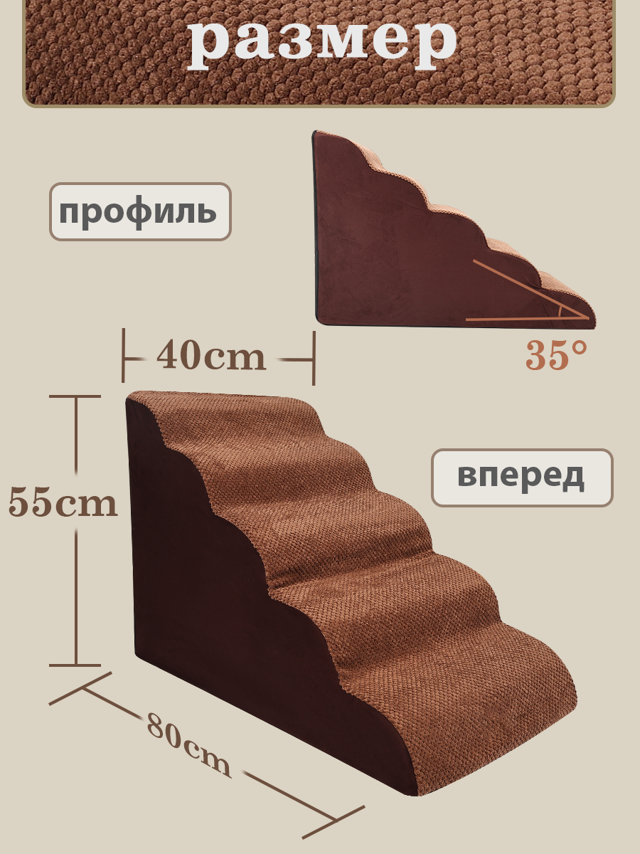 Лестница для собак прикроватная, лесенка для маленьких, кошек, средних пород, 5 ступеньки, коричневый, 400X550X800MM: сравнение цен, характеристики, фото, актуальное наличие и цены.
