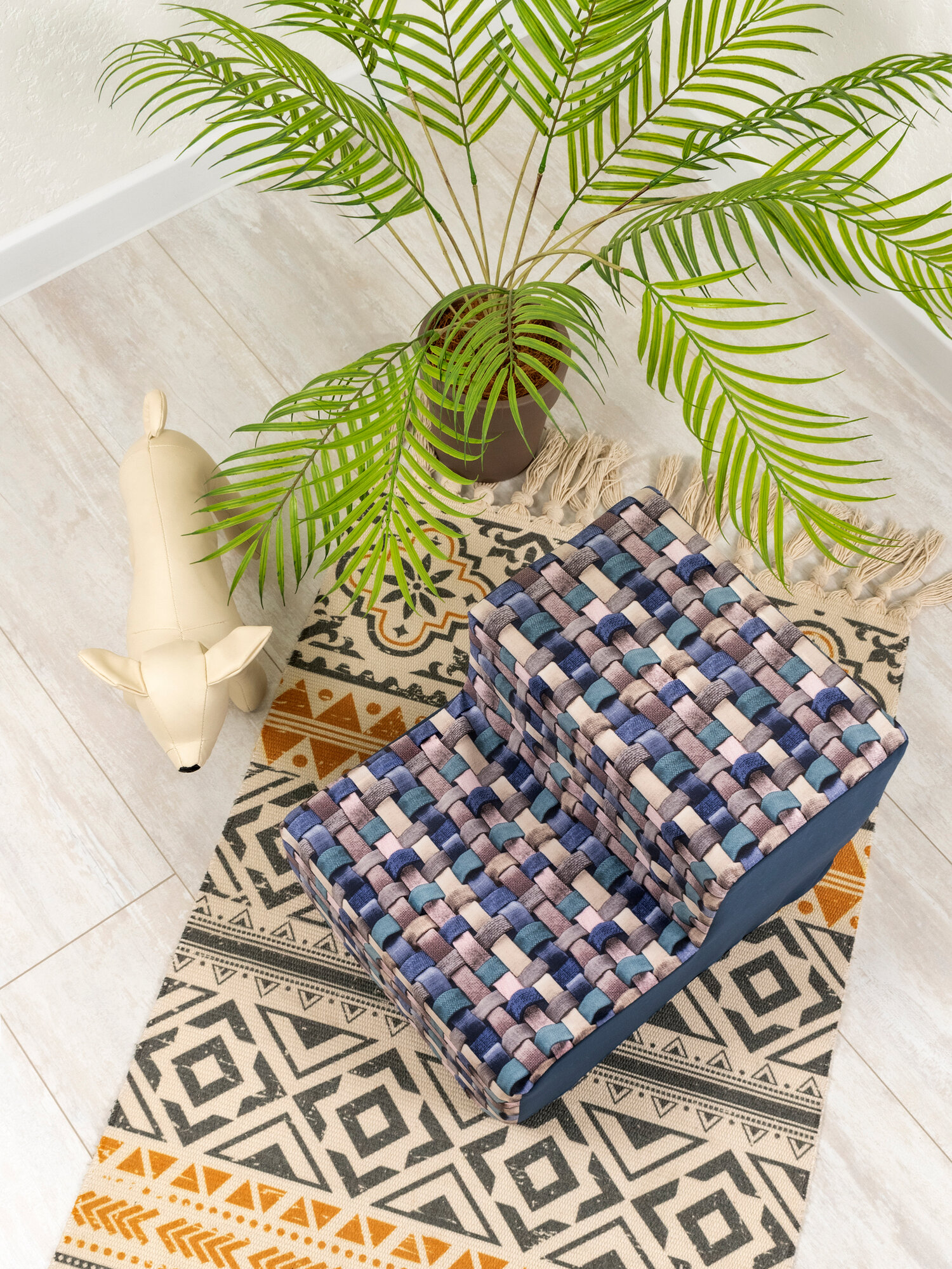 Лесенку можно использовать как лежанку. Съемный чехол: чехол на молнии снимается и легко стирается в машинке. Стирать при температуре не выше 30-40 градусов. Наполнитель — плотный упругий поролон. Ступеньки зафиксированы, не разъезжаются в разные стороны. Сам поролон можно легко помыть под душем. Изделие изготовлено из качественной мебельной ткани.