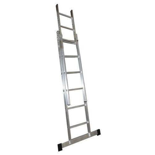 Конструкция состоит из двух секций. Одна – стандартная и служит для поднятия на пару ступенек. Вторая необходима для увеличения высоты лестницы. Раскладывается путём поднятия второй секции вверх. При изготовлении применялся алюминий высокой прочности. Нижняя опора имеет повышенную длину и резиновые части на её концах, что предотвращает скольжение лестницы при максимальной нагрузке.