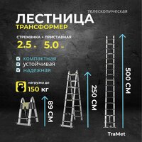Лестница двухсекционная стремянка телескопическая 2.5+2.5м профессиональная, алюминиевая, приставная, складная, трансформер TraMet: сравнение цен, характеристики, фото, актуальное наличие и цены.