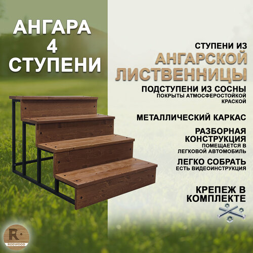 Лестница-крыльцо RODWOOD «Ангара» на 4 ступени, окрашенная, ступени из ангарской лиственницы: сравнение цен, характеристики, фото, актуальное наличие и цены.