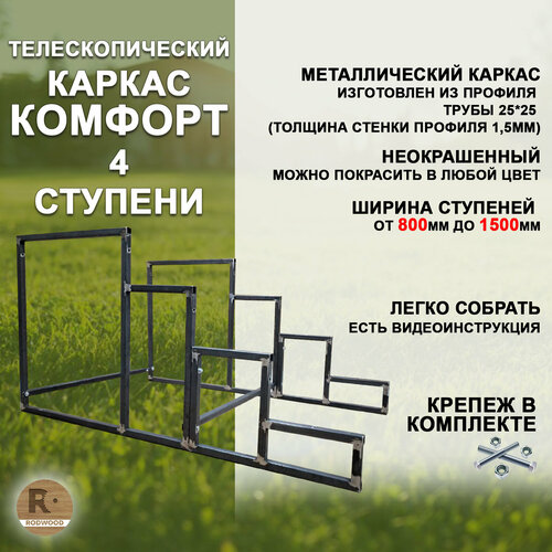 Лестница-крыльцо каркас «Комфорт» на 4 ступени с регулируемой шириной от 900 до 1500мм, неокрашенный: сравнение цен, характеристики, фото, актуальное наличие и цены.