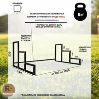 Телескопическая перемычка позволяет регулировать ширину лестницы от 900 до 1500 мм. Перемычка должна быть меньше ступеней на 55мм.