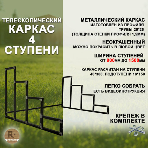 Лестница-крыльцо каркас на 4 ступени (с регулируемой шириной от 900 до 1500мм, неокрашенный): сравнение цен, характеристики, фото, актуальное наличие и цены.