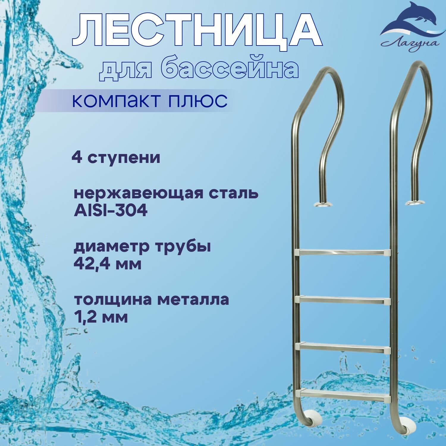 Лестница для бассейна из нержавеющей стали марки AISI-304 от российского производителя лагуна предназначена для частных и коммерческих бассейнов.