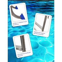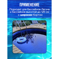 Лестница односторонняя: 3 ступени Диаметр трубы - 42,4 мм. Толщина металла - 1,5 мм. Заглушка для лестниц резиновая с регулировкой по углу Лестницы не комплектуются стаканами для бетонирования. Способ монтажа: под анкерные крепления ( Артикул на площадке ТМ1128) Лестницы подходят для бассейнов высотой 125 см.