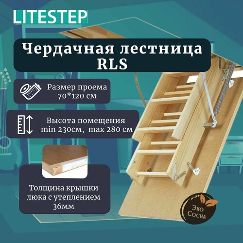 Лестница чердачная LITESTEP RLS 70*120*280 см, чердачная деревянная (2 сегмента лестничного марша в разборе): сравнение цен, характеристики, фото, актуальное наличие и цены.
