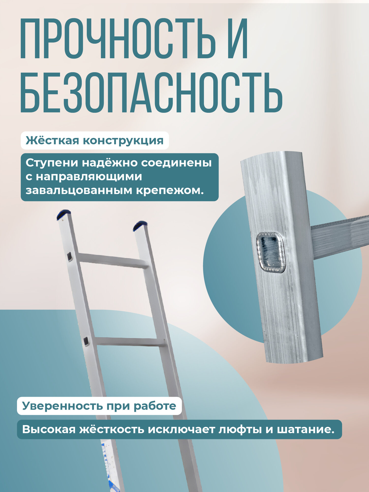 Легкая: алюминиевые лестницы легкие и удобные в транспортировке, что делает их идеальными для использования в различных условиях, таких как строительные площадки, склады и дома.