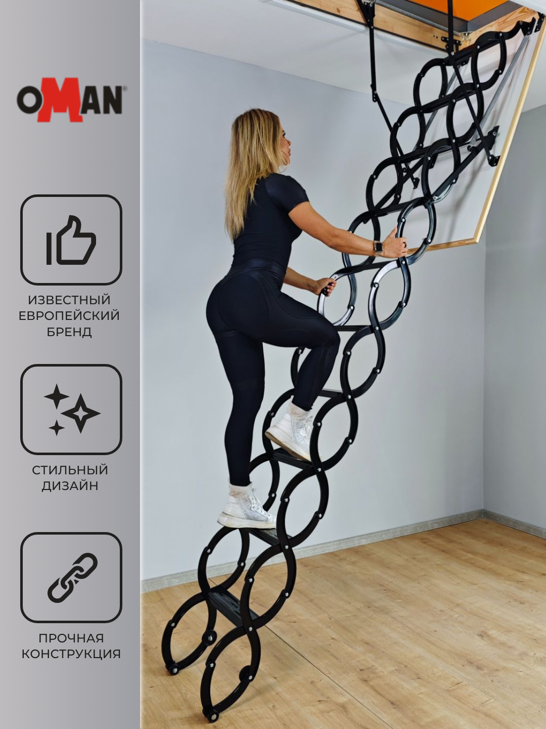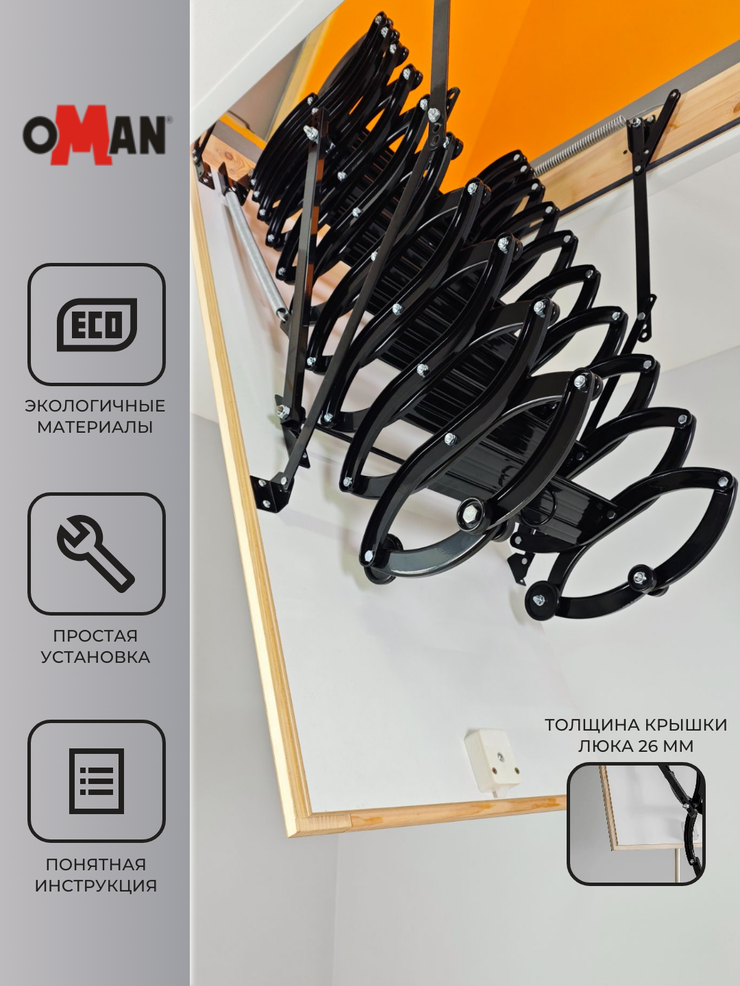 Лестницы OMAN обладают функцией открывания люка изнутри помещения (С чердака)