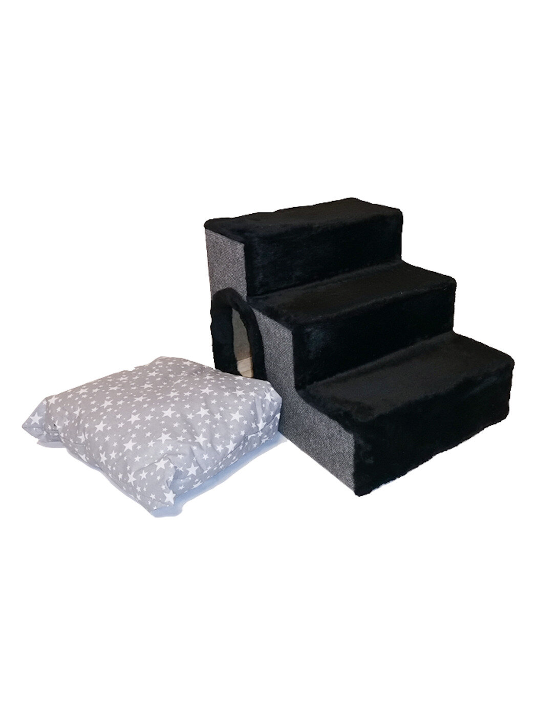 Купить Лестница прикроватная для питомцев с домиком, три ступени, арочный вход слева, подушка в комплекте, черный, 40*37*48 см с доставкой по всей России.